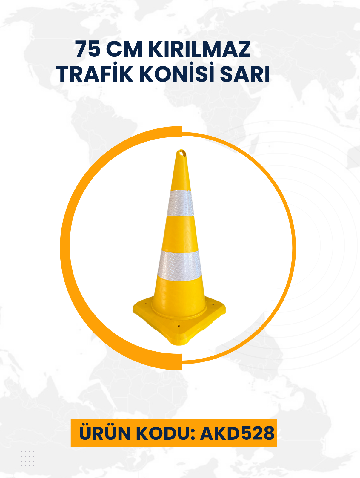 75 Cm Kırılmaz Trafik Konisi Sarı- Kırmızı Reflektif